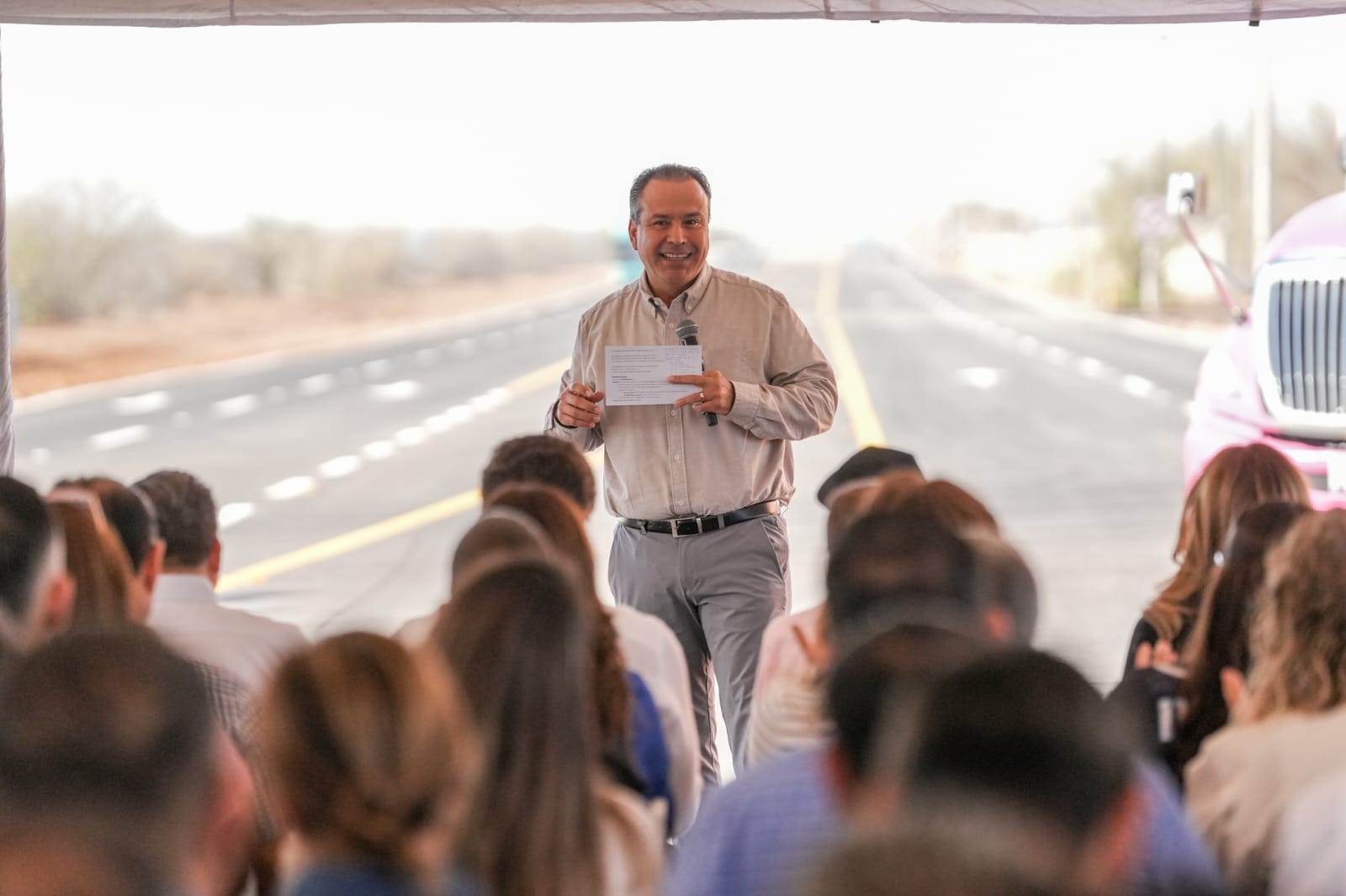 “En la historia de México, desde la Constitución Mexicana de 1917, nunca se había otorgado un título de concesión para un libramiento por un municipio en México, hoy Hermosillo hace historia, es el primer municipio del país que otorga un título de concesión”, destacó ante empresarios del ramo de la construcción e invitados.
